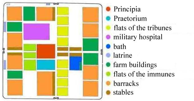 In the camp there were also farm buildings, storage buildings and workshops, where the immunes lived. These were people who worked in the administration of the Principia and in the farm buildings, and the doctors working in the nearby military hospital. Their loggings were west of the Principia.