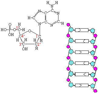 in der Desoxyribose), der andere Holm von 3' nach 5').Diese "Leiter" ist