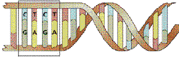 mit den vier verschiedenen Nukleotiden. Möglicherweise lässt