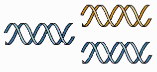 Man geht davon aus, dass nach der Replikation neben dem alten DNS-Doppelstrang ein kompletter neuer DNS-Doppelstrang aufgebaut wurde. |