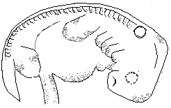 ![]() | Links sieht man die Abbildung von einem menschlichen Embryo zu Beginn des zweiten Schwangerschaftsmonats. Fünf Paar Kiementaschen kann man erkennen. |