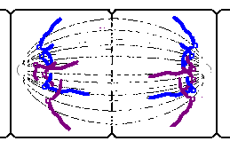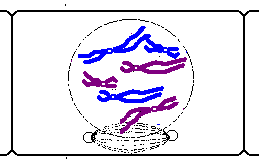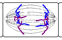 Unten sind die Abbildungen von mitoestadien einer Spermatogenese. Der doppelte Chromosomensatz hat hier 6 Chromosomen. Allerdings sind nur die Stadien (1) und (15) in der richtigen Position. Die Stadien (A) bis (N) sind in falscher Reihenfolge. Du solltest sie ausschneiden und auf dem zweiten Blatt in richtiger Reihenfolge einkleben.
