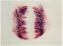 ![]() | MetaphaseDie Chromosomen werden einzeln in der Äquatorialebene (Aquatorialplatte) angeordnet. Die verschiedenen Chromosomen können jetzt nach Form und Größe deutlich unterschieden werden.Die Metaphase eignet sich zur Herstellung von Karyogrammen. | ![]() |