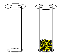 | Wir lassen einen Standzylinder leer und füllen den anderen zu einem Viertel mit keimenden Erbsen und geben 50 ml Wasser hinzu. Beide Zylinder decken wir mit einer Glasplatte ab. | ![]() (hdm) |