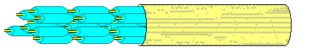 Nervenzellfasern werden mit einer Bindegewebshülle umgeben zu Nerven zusammengefasst. | ![]() |