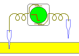 Wenn wir an einer Nervenfaser, die zum Zeitpunkt der Messungen keine Nervensignale leitet, die Potenzialdifferenz zwischen dem Inneren der Nervenfaser und dem äußeren Milieu untersuchen, messen wir einen Wert von etwa -80 oder -90 mV. Man spricht vom Ruhepotenzial oder der Ruhespannung. |