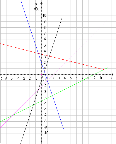 1) Welche Funktionsgleichung gehört zur lila Geraden?