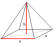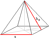 Berechne Volumen, Mantel und Oberfläche einer senkrechten Pyramide mit quadratischer Grundfläche mit