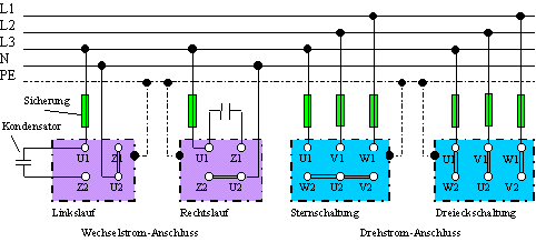 das den Motorläufer antreibt. Drehstrommotore können in Sternschaltung oder