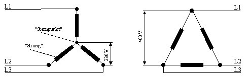 sie meistens in Sternschaltung angeschlossen. Bei höheren Leistungen laufen