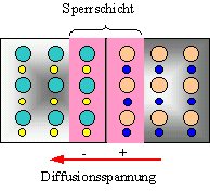 | Grafik 61: PN-Übergang nach der Diffusion mit auf-gebauter Sperrschicht |
